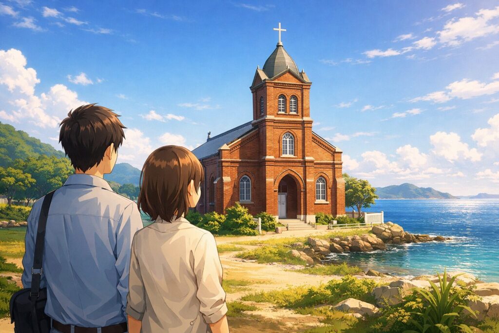「見えてきたね。あれが堂崎教会」